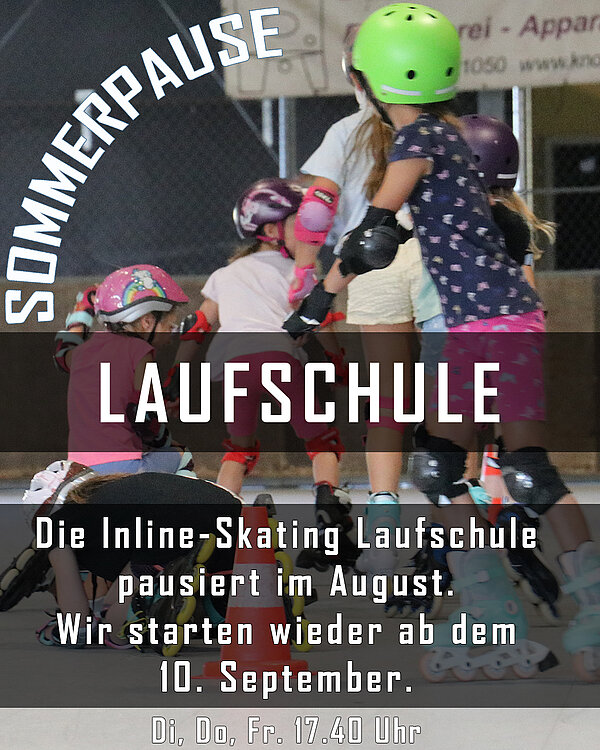 Die Inline-Skating Laufschule geht in die Winterpause. Der Neubeginn 2025 wird rechzeitig bekannt gegeben.