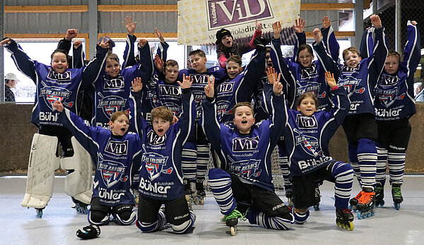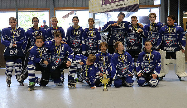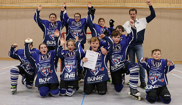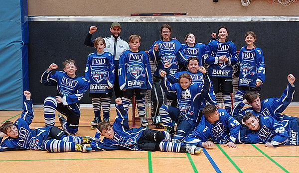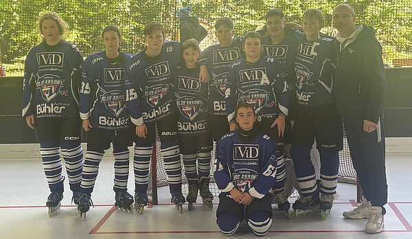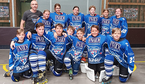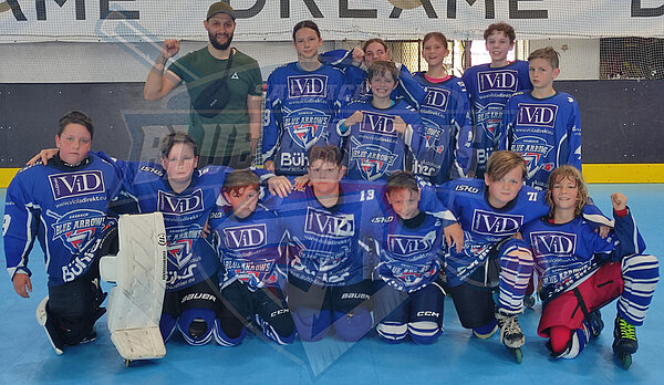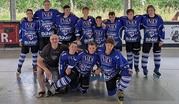 Mit einem 29:0 gewannen die Blue Arrows gegen das Schülerteam aus Spaichingen. Der Tabellenletzte aus dem südlichsten Teil des Verbandsgebietes befindet sich nach einer kleinen Durststrecke im Neuaufbau des jüngsten Nachwuchs und so mussten die Badgers diese Saison viel Lehrgeld bezahlen. Die zwei Topscorer der Liga auf Sasbacher Seite, Liam Wagner und Julian Gerber, gaben von Beginn an die Marschrichtung vor. Die Tore fielen im Minutentakt und sorgten für heitere Stimmung. Die Leistungsdichte in der Schülerspielklasse nahm in der zurückliegenden Saison zu. Mit dem vierten Platz gehören die Blue Arrows seit 2021 erstmals nicht mehr zu den Top 3 der Liga, doch das Maximalziel wurde erreicht.