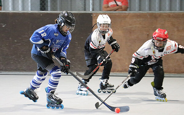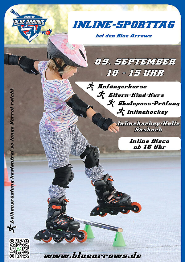 Im zarten Alter von drei Jahren steigen die Ersten in die Inline-Skating Laufschule ein. Seit zwölf Jahren bringt Daniel Bühler die Kinder auf die acht Rollen und vermittelt auf spielerische Weise die Grundtechniken im Inlinefahren. In dieser Zeit durchliefen knapp 1.500 Kinder das Sasbacher Erfolgsprojekt. Kinder, die mehr als nur Skaten möchten, wechseln ins Inlinehockey und das ist nicht nur eine Sportart für Jungs. Ein Drittel der Kinder im Altersbereich U10 sind Mädchen, Tendenz steigend. Zum Einstieg gibt es eine kostenfreie Hockey-Leihausrüstung, damit man den schnellen Mannschaftssport auf acht Rollen kennenlernen kann. Trainiert wird ganzjährig, auch in den Ferien, montags und mittwochs von 17-18.30 Uhr. Kontakt: Daniel Bühler | mail@bluearrows.de