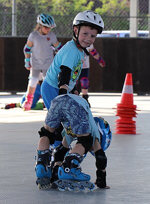 In unserer Inline-Skating Laufschule bringen wir Kindern von den ersten Grundschritten an das Inlineskaten bei. Die Laufsaison startete im 10. März. Es sind alle Kurse voll belegt.